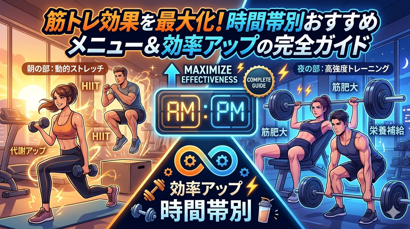筋トレの効果を最大限に引き出すには、メニューの選び方・時間帯・頻度が鍵です。本記事では初心者でも実践できる筋トレメニューと、効率よく結果を出すための時間帯・休息のコツをわかりやすく解説します。